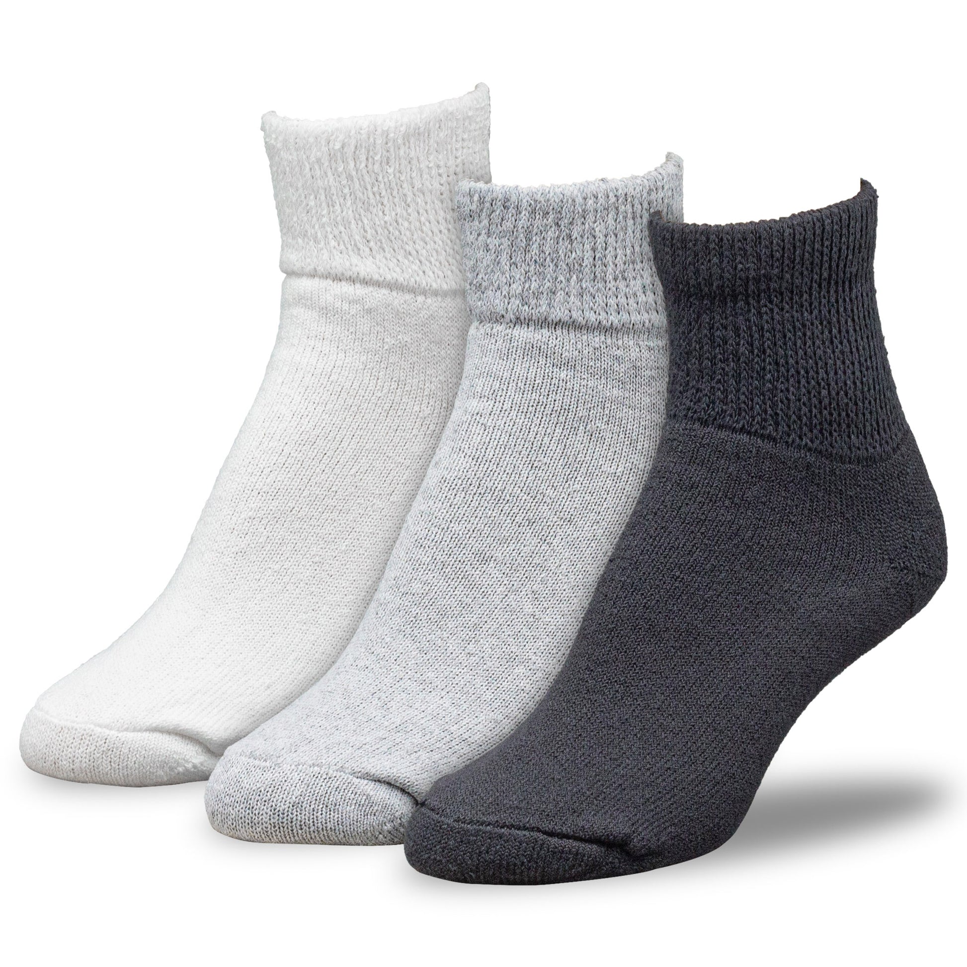 - Sold in 3 Pair Packs in 3 Color Options (Black, Grey, or White)
